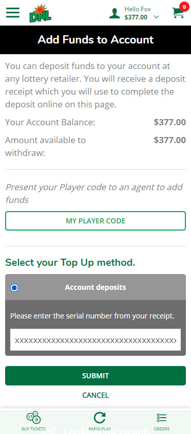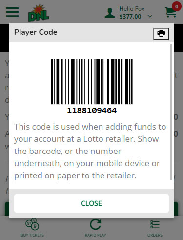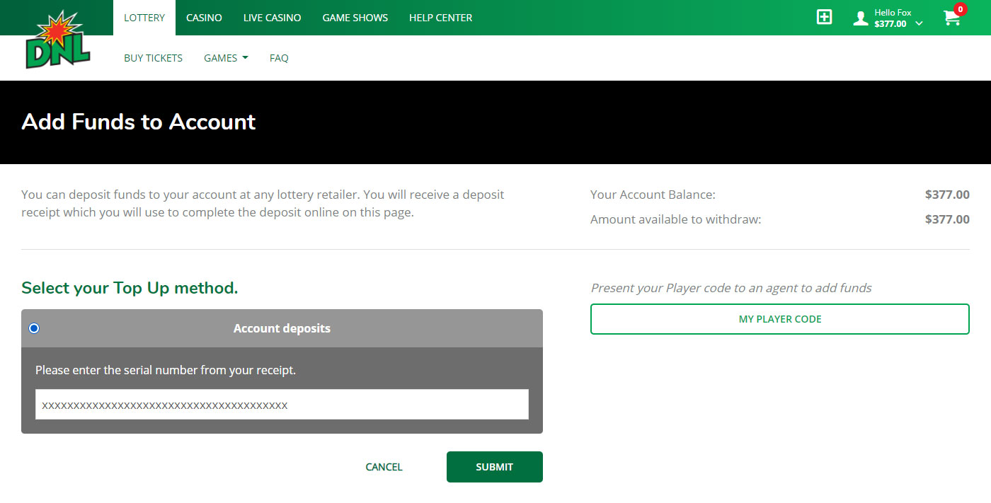 - Give the retailer the funds you wish to add to your account and let him scan your player code.